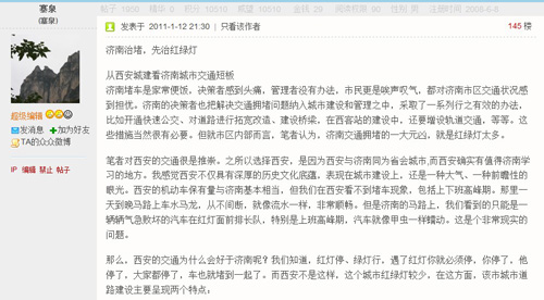 網(wǎng)友”寨泉“在大眾論壇發(fā)帖寫提案