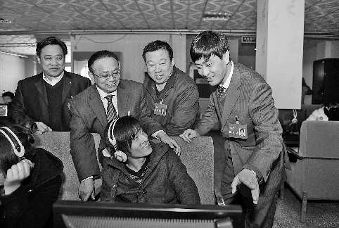 15日上午,在濟南青年公園街道辦事處管區的一家網吧,政協委員李鋼、李長寧、王仁華和李玉華(后排從右到左)進行調研。 本報記者 王媛 攝