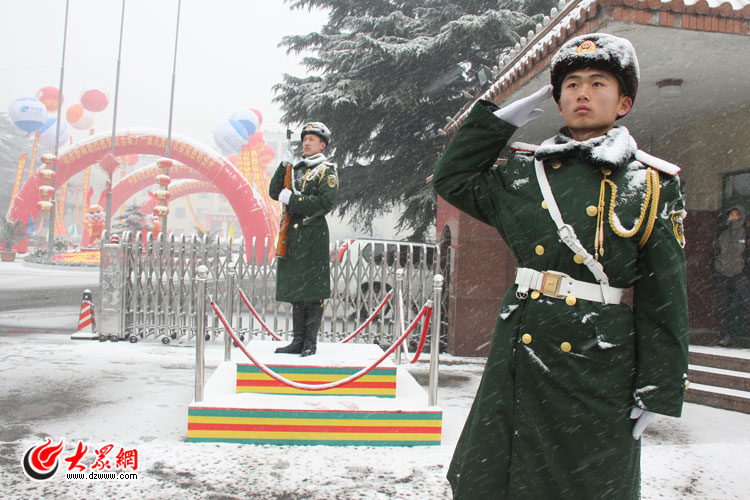 大雪籠罩的山東大廈前,武警官兵始終堅(jiān)守執(zhí)勤一線,對(duì)代表、委員住地實(shí)行24小時(shí)站崗、巡邏制度,確保省兩會(huì)安全順利召開。圖為武警山東總隊(duì)濟(jì)南市支隊(duì)官兵在風(fēng)雪中為省“兩會(huì)”保駕護(hù)航。(通訊員 姜洪斌 高波 攝影報(bào)道)