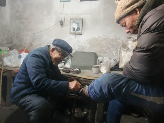 12月13日上午,記者來到張玉友家。這是一所老宅院,房子破舊,院落狹窄。兩間小西屋,陳設簡陋,是張玉友給人看病的地方,記者進來時,已是85歲高齡的他,正戴著老花鏡埋頭給一位老人看病。