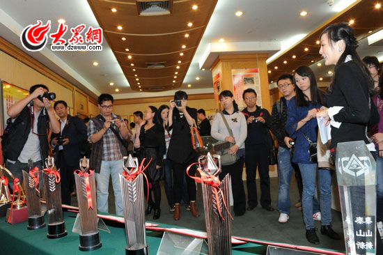 整個報史展共分四個部分,在“光輝歷程”部分中,記者們參觀了大眾日報創刊地及印刷廠,珍藏在展柜中的大眾日報創刊號報紙吸引了不少記者的目光。在報史館的墻壁上,一幅幅彩色巨畫向參觀者講述了大眾日報在戰火硝煙中成長的艱難歷程:國難歲月,大眾報人迎著戰爭的硝煙,堅守陣地,先后有530多名工作人員獻出生命,這在中國乃至世界報業史上都是極為罕見的。在聽取解說員講述的過程中,采訪團記者們臉上都露出了肅穆的神情。“激揚文字”展示部分的一張張彩色圖展,使記者們看到了大眾日報在不同時期對內容創新孜孜不倦的追求。在報史館的榮譽臺前,熠熠生輝的中國新聞獎獎杯令采訪團記者不住贊嘆并拿出手中的相機留念。