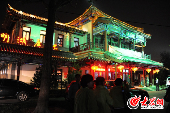 [提要] 八仙桌太師椅、高懸燈籠青花瓷、雕梁畫棟花鳥魚、曲山藝海明湖居。今晚8時許,“文化強省看山東——第七屆中國網絡媒體山東行”大型采訪團來到大明湖畔的明湖居,體味一個飽含文化傳統的百年老店駛入市場“快車道”后帶來的嶄新變化。