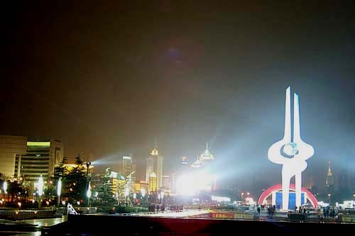 泉城廣場位于市區中心,是濟南的中心廣場,也是一座集文化娛樂、綠化休閑和商業購物為一體的大型現代化廣場。廣場西臨趵突泉、南望千佛山、北靠護城河,將城市的輪廓線集中展現給游人,將最能集中體現泉城特色的幾大景點納入廣場視覺內。 廣場呈長方形,東西長約780米,南北寬約230米,占地16.7公頃。自西向東主要由趵突泉廣場、濟南名士林、泉標廣場、下沉廣場、頤天園與兒童樂園、濱河廣場、四季花園、荷花音樂噴泉、文化長廊、科教文化中心、銀座購物廣場等部分組成。 泉城廣場集中體現了“山、泉、湖、城、河”的泉城特色。站在廣場上,無論是近看廣場四周繁華的商業區、現代化的建筑,還是遠眺濟南東部、南部在千佛山的背景中襯托下的高樓林立的現代化城市面貌,都能讓人感受到欣欣向榮、蓬勃發展的城市脈搏。 廣場設計方案也著重強調了“泉文化”,東部有荷花音樂噴泉,能變換出數種造型;西部的泉標下有四組噴泉,寓意濟南的“四大名泉”,七十二個小涌泉,寓意“七十二名泉”,并釘有濟南“七十二名泉”的名牌,游人在這里可以了解到泉城的“泉文化”。荷花音樂噴泉在泉城廣場東部,是廣場的主要景觀之一。在圓形水池中,"盛開"著一朵巨大的金屬荷花,水自水池及荷花中噴射而出,形成大小無數個噴泉,最高的達數十米,蔚為壯觀。四季花園在泉城廣場南、北兩側。南側花園以草本和宿根花卉為主,春、夏、秋三季繁花盛開,五彩紛呈;北側花園花、草、樹相結合,一年四季都綠色蔥郁。 文化長廊在荷花音樂噴泉東側,以噴泉為圓心呈半圓弧狀,長150米,分三層。長廊內設有大舜、管仲、孔丘、孫武、墨翟、孟軻、諸葛亮、王羲之、賈思勰、李清照、戚繼光、蒲松齡等12位山東名人的塑像及由14幅浮雕組成的《圣賢史跡圖》。登上文化長廊頂層,可將泉城廣場全貌盡收眼底。銀座購物廣場在泉城廣場地下一層,經營面積3萬多平方米,分為大型超市區、精品區和餐飲娛樂區。游人在游覽泉城廣場后,可到此休息、購物、娛樂。