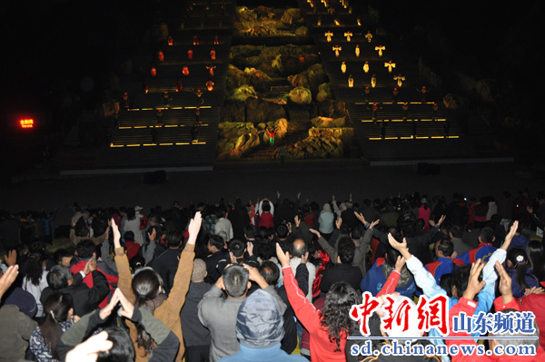 圖為《中華泰山·封禪大典》表演最后,全場觀眾與舞臺演員共同祈福。(攝影:陳慶芳)