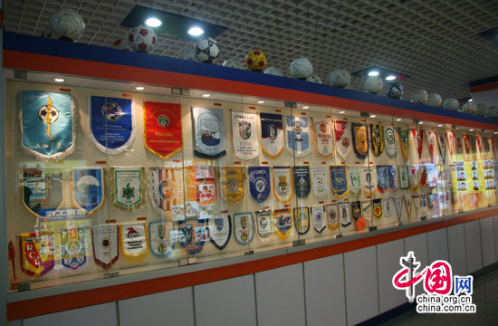 山東魯能泰山足球學校榮譽室內的展品。中國網 傅陽 攝
