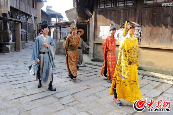在采訪中,記者了解到,臨沂國際影視城集江浙水鄉、徽派建筑、歐陸風格為一體,建造了商鋪街市區、水陸社戲區、影視模擬拍攝區和賓館休閑區等九大區域,既體現了“白墻青磚黛瓦,小橋流水人家”的江南建筑風格,又融入了魯南地區的歷史文化,把沂州城、沂州渡、沂河水景等當地文化元素有機而巧妙的組合起來,貫穿整個景區。