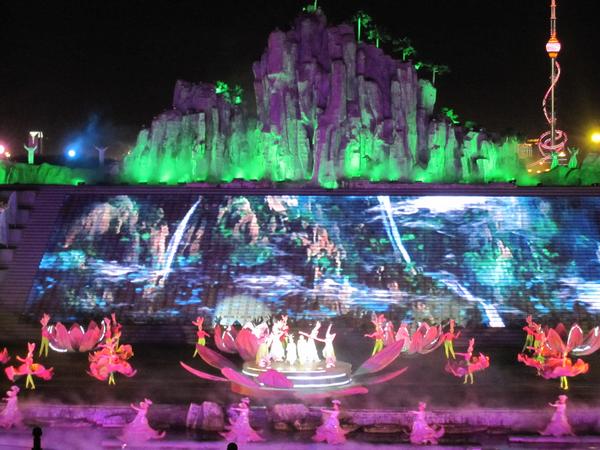大型水上實景演出《蒙山沂水》是臨沂傾力打造的一部文藝精品!睹缮揭仕分魑枧_搭建在美麗的沂河湖心島上,東西長120米,南北寬60余米,舞臺最高處近30米,主舞臺及舞臺前水面占地8000余平方米,可同時容納觀眾2000余人,兩期工程共計投資6000余萬元。