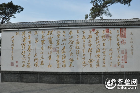 [提要] 今天下午,第七屆中國網絡媒體山東行的記者來到了臨沂市區著名的書法廣場,感受書法藝術所給予的感官魅力。從王羲之的《蘭亭集序》到蘇軾的《寒食帖》,從古至今、包羅華夏的書法藝術作品系數呈現。