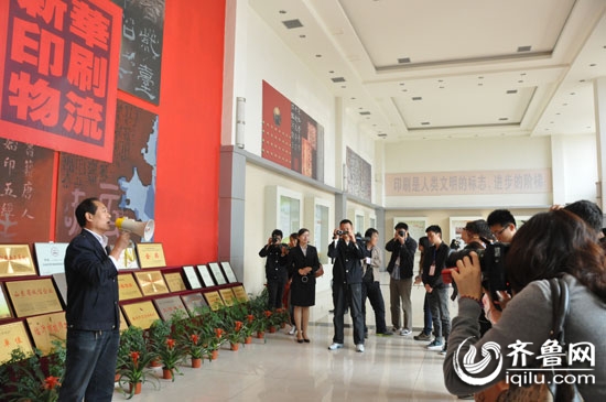 臨沂新華印刷物流集團總經理蘇振啟向媒體行的記者介紹公司相關情況
