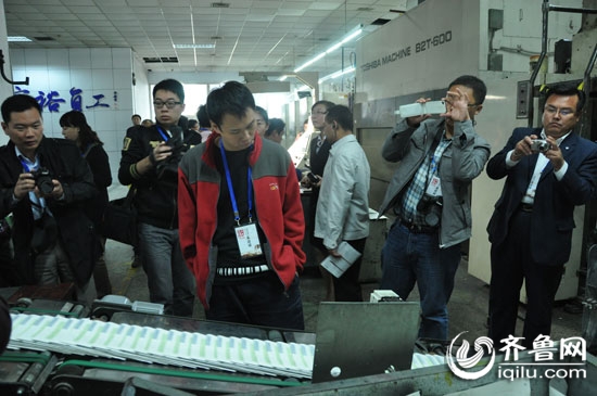 齊魯網10月19日訊 今天上午,第七屆全國網絡媒體山東行記者團抵達了本次“文化強省看山東”采訪活動的第三站臨沂,參觀新華印刷物流集團。采訪過程中。媒體行的記者們去到生產車間,目睹了圖書從紙張、印刷、到裝訂成冊的全過程。