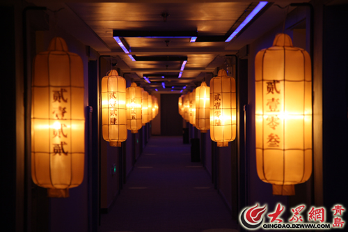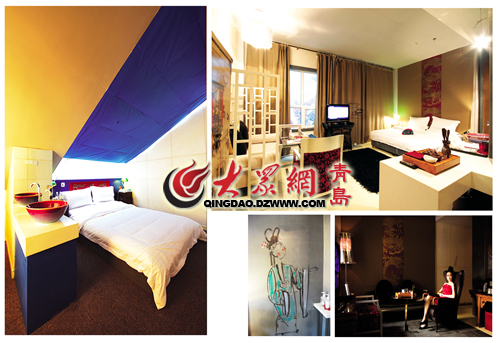 轉(zhuǎn)到樓上的客房,依舊讓你佩服,你會(huì)想“這是誰(shuí)的創(chuàng)意?”每個(gè)房間的門口全部掛著燈籠,燈籠上 用中國(guó)繁體字寫著房間號(hào),2013房間就是“貳零壹叁”,還沒走進(jìn)房間,就已經(jīng)被一排排的燈籠拉回了中 國(guó)的古代。進(jìn)入到房間,就進(jìn)入到了真正的中國(guó)文化之“上”了,這里有將中國(guó)園林藝術(shù)與現(xiàn)代家居設(shè)計(jì) 相結(jié)合,風(fēng)景與家居相互交融的園林小宅。這里有于華夏風(fēng)韻與歐陸風(fēng)情之間,品味魅力女性的雍容、華 貴、優(yōu)雅的女性的私人空間-----名媛美廬。復(fù)式設(shè)計(jì)可分可合的空中雅墅,居家之合、商住之分、主傭 之別、上下之隔、主桌之聚,即使陌生也會(huì)上演一場(chǎng)美麗的邂逅。觀庭寢房所展示的不僅僅是院落開闊的 景觀和賞星,更是心靈的一次徹底釋放。每個(gè)房間的擺設(shè)都切合主題又匠心獨(dú)運(yùn),即使是一面中國(guó)風(fēng)涂鴉 墻,或者是一個(gè)花瓷的洗手盆,還有那貼滿《易經(jīng)》的衣柜,有的簡(jiǎn)潔時(shí)尚、有的古樸濃意,不論是誰(shuí),不論是什么心情,在這都能找到屬于自己的專屬空間。
