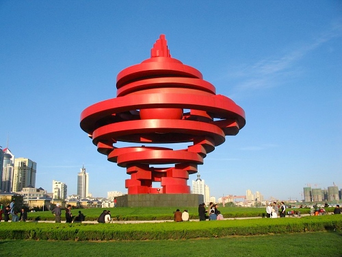 五四廣場北依青島市政府辦公大樓,南臨浮山灣,總占地面積10公頃。 五四廣場因青島為中國近代史上偉大的五四運動導火索而得名,意在弘揚五四愛國精神激勵人們奮發圖強,迎接新世紀的到來。 五四廣場分南北兩部分,分布于中軸線上的市政府辦公大樓、隱式噴泉、點陣噴泉、《五月的風》雕塑、海上百米噴泉等富有節奏地展現出莊重、堅實、蓬勃向上的壯麗景色,在大面積風景林的襯托下更加生機勃勃,充滿現代氣息。