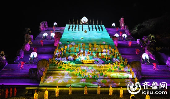 據(jù)介紹,《中華泰山·封禪大典》是山東省政府打造山東旅游精品的重點(diǎn)項(xiàng)目,由泰安市委、市政府招商引資,邀請(qǐng)中國(guó)大型山水實(shí)景演出創(chuàng)始人——梅帥元先生的制作團(tuán)隊(duì)精心打造的一臺(tái)大型山水實(shí)景演出。2009年9月開始在泰山東麓天地劇場(chǎng)隆重上演的《中華泰山·封禪大典》,通過對(duì)封禪文化、祈福活動(dòng)的藝術(shù)提煉,精彩再現(xiàn)了泰山五朝帝王封禪場(chǎng)景,以泰山歷史文化為核心,以泰山自然山水為背景,充分展示泰山文化的獨(dú)特價(jià)值與精深內(nèi)涵。今天上演的今年第167場(chǎng)。