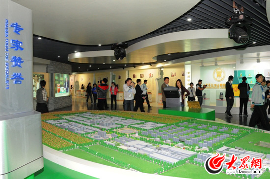 在博物館內,記者看到一組等比例縮小的泥塑群,不足一米高的房子,一尺高的人物,惟妙惟肖地還原古代白酒的生產、銷售流程;豎掛在墻上的微型雕塑展示出魯酒在不同場合,如祭祖、婚典等的不同酒禮酒道。與此同時,展廳還通過酒簍、瓷器等文物展覽介紹山東酒業的發展歷程。在二層展廳內,記者們通過透明玻璃可以看到景芝酒的生產釀造、灌裝全過程。