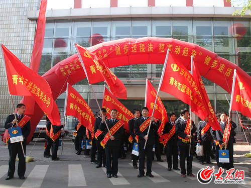 活動在濟南地方稅務局天橋分局局長徐文科作了簡短發言,并與天橋國家稅務局局長王振泉為健步走活動代表授旗后,天橋國地稅方陣人員頂著烈日和勁風按照東西南北四個方向邁開指向終點的步伐。在行進途中,隊員們高舉“青年志愿者稅收宣傳隊”的大旗分外耀眼,范圍遍布天橋區的商城、市場、廣場、汽車站、火車站、社區、學校、醫院、轄區的主干道等,邊走邊向過往群眾散發宣傳資料和稅宣拉畫筆,宣傳稅收政策和稅收知識,解答稅收政策咨詢,引得許多人駐足相問,并索取稅宣資料和稅宣拉畫筆。天橋國地稅通過借助健步走這一別開生面的新舉措,將稅收宣傳的相關知識,寓于廣大人民群眾喜聞樂見的體育載體中去,增強了稅收宣傳的群眾性、趣味性,進一步擴大了稅收宣傳的社會效應,增強了全社會依法納稅的意識;也充分展示了國地稅干部職工不怕吃苦、敢于拼搏、團結互助的精神風貌,實現了體育運動與宣傳稅收的完美結合,賦予了稅務文化的新內涵。這次活動共發放稅收宣傳資料6000余份、贈送稅宣拉畫筆1500多支,解答納稅人咨詢600余人次,真正取得了稅法知識走進老百姓的良好效果,再次掀起稅收宣傳高潮。
