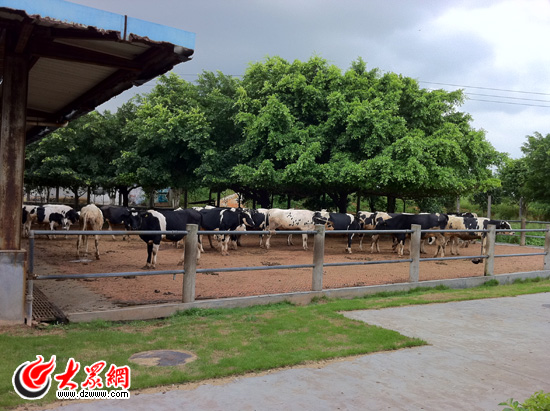 在導游的引導下,采訪團經過藏獒園,來到了奶牛的養殖場,此時的奶牛們正在悠閑地吃著草,在大樹的映襯下,這場景格外的怡然。奶牛們按照年齡的不同,被分在兩個牛欄里,在每天上午和下午的兩個時段,園子里都會進行現場人工擠奶表演,因為來的時間過晚,我們沒能親眼目睹人工擠奶的場景,只能跟牛欄里的小牛逗弄一番。這里也是晨光乳業有限公司的奶牛飼養基地,“晨光奶”因其良好的品質成為第26屆世界大學生夏季運動會唯一指定乳制品。