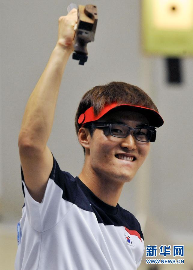 [提要] 8月20日,韓國選手李大明在賽后慶祝奪冠。當日,在深圳大運會射擊男子10米氣手槍個人賽決賽中,韓國選手李大明以685.7環的總成績奪冠。盡管在大運會泳池中豪取三金,有點“飛魚”的影子,但要想參加倫敦奧運會,在強手如林的美國隊,菲利普斯還要更加努力才行。