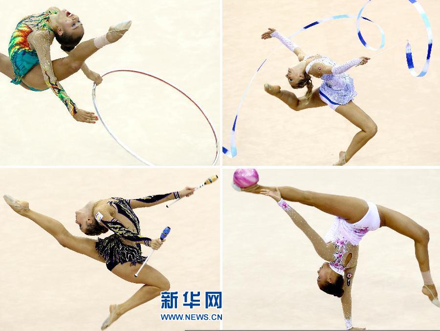 8月12日拉開帷幕的深圳第26屆世界大學生夏季運動會接近尾聲,來自世界五大洲的大運健兒賽會期間在賽場上美麗的身姿,給人們留下了美好的回憶。圖為8月22日大運會藝術體操單項決賽中圈操、球操、棒操和帶操的拼版照片。新華社記者陳建力攝