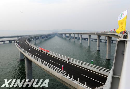 當日,山東高速膠州灣大橋通過了相關部門的交工驗收。山東高速膠州灣大橋全長36.48公里,是目前世界上已建成的最長的跨海大橋,是國道主干線——青蘭高速的起點段。