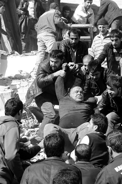 [提要] 23日,在土耳其東部凡省,當(dāng)?shù)孛癖姀膹U墟中救出一名受傷的老人。最近的一次是2010年3月,在土耳其東部發(fā)生的地震造成51人死亡,在2003年,土耳其東南部城市賓格爾,發(fā)生里氏6.4級地震使177人喪生。