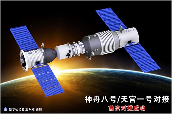 圖表:神舟八號/天宮一號對接——首次對接成功新華社記者王永卓編制。