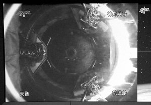 神舟八號攝像頭拍攝的交會對接瞬間畫面。