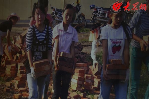 馬鹿鄉(xiāng)中心小學(xué)的小學(xué)生在震后重建校舍(資料圖)