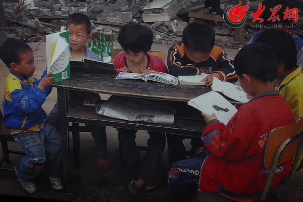 馬鹿鄉(xiāng)中心小學(xué)的小學(xué)生在震后學(xué)習(xí)(資料圖)