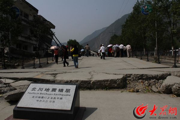 走在經(jīng)過整修過的老縣城主干道,兩側(cè)垮塌建筑旁的標牌上寫著“某單位,共有多少員工,地震死亡多少”。一路走來,無數(shù)生命定格的照片闖進腦海。也許他們可以有個更好的未來,也許他們再過幾年就可以享受悠閑的退休生活,也許他們馬上就要當(dāng)爸爸、媽媽了,也許他們的孩子在等著他們回家……有太多的也許,都在地震的一瞬間結(jié)束,成為了歷史。再過幾天,北川老縣城這座承載著無數(shù)悲痛和苦難的地方,將整體加固完畢后向參觀者完全開放。在我們采訪團到達的當(dāng)天,就有好多莫名而來的參觀者靜靜地走在街道上,拿起相機去定格歷史。街道兩邊為防止人們攀爬而設(shè)立了護欄,卻無人去翻越拍照,逝者長眠于此,一步跨越或許會驚擾他們。