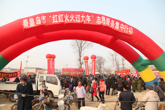 [提要] 1月10日,秦皇島市在山海關區(qū)石河鎮(zhèn)安民寨大集結合“三下鄉(xiāng)”活動,舉行了全市“紅紅火火過大年”主題志愿服務活動集中行動。為推動“紅紅火火過大年”主題志愿服務活動在全市掀起高潮,營造歡樂喜慶、文明祥和、溫馨和諧的節(jié)日氛圍,又結合全市“三下鄉(xiāng)”活動,精心設計和組織了這次全市“紅紅火火過大年”主題志愿服務活動集中行動。