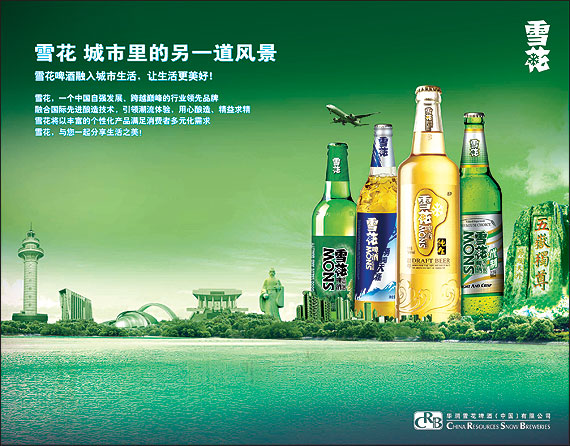 華潤雪花啤酒(中國)有限公司成立于1994年,是一家生產、經營啤酒的全國性的專業啤酒公司。總部設于中國北京。其股東是華潤創業有限公司和全球第二大啤酒集團SABMiller。目前華潤雪花啤酒在中國經營超過70家啤酒廠,旗下含雪花啤酒品牌及30多個區域品牌共占有中國啤酒市場的21%份額。2010年華潤雪花啤酒銷量超過928萬千升,年增長達11%,公司總產銷量連續六年遙遙領先國內其他啤酒企業。2010年雪花單品牌銷量進一步增長16%達到843.1萬千升,鞏固了其作為全球領先啤酒品牌的地位。