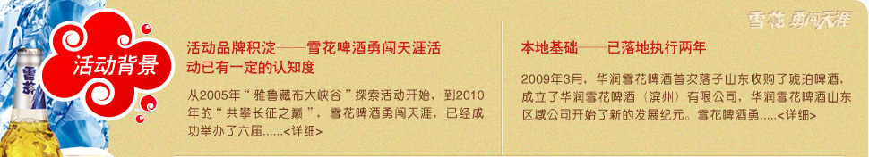 2002年,華潤雪花啤酒(中國)有限公司全力將雪花啤酒塑造成為全國品牌,雪花啤酒一直以清新、淡爽的口感,積極、進取、挑戰、創新的品牌個性深受到全國消費者的普遍喜愛,成為當代年輕人最喜愛的啤酒品牌。