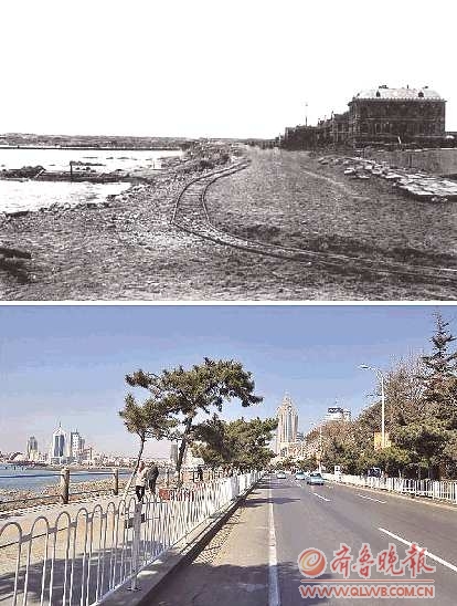 ▲百年前和現在的青島灣海濱大道。(資料片)