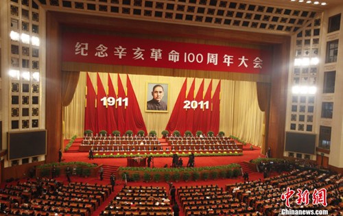 [提要] 10月9日,紀(jì)念辛亥革命100周年大會(huì)在北京人民大會(huì)堂舉行。胡錦濤指出,辛亥革命推翻了清王朝統(tǒng)治,結(jié)束了統(tǒng)治中國幾千年的君主專制制度,傳播了民主共和的理念,以巨大的震撼力和深刻的影響力推動(dòng)了近代中國社會(huì)變革。