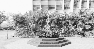 檀香山意奧蘭尼中學校園里的少年孫中山雕像。陳一鳴攝