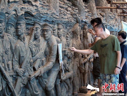 7月6日,為了迎接辛亥革命百年,大型群雕《首義烽火》已完成泥塑階段。圖為《首義烽火》展現的生動畫面。中新社發 張暢 攝