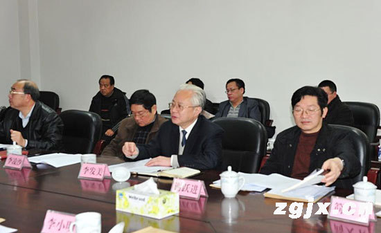 湖南省委宣傳部副部長李發美(右二)向督導組匯報了湖南省新聞戰線前段開展專項教育活動情況