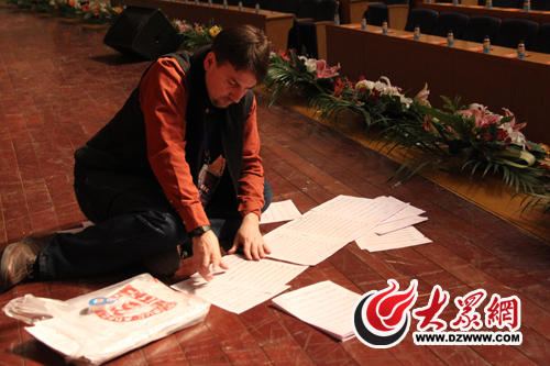 大眾網濟南12月23日訊(記者 馬鑫)“It's a big room!(演出場地真大。眱擅筇崆偈诌M入山東會堂后不由地贊嘆。今天下午4點,參加今晚“2012年建行之聲新年音樂會”的美國費城國家交響樂團的樂隊成員,以及特邀指揮指揮茲沃尼米爾·哈克先生和首席小提琴手馬克斯·佐琳先生來到山東會堂,開始了正式演出前的集中彩排。