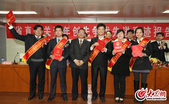 大眾網(wǎng)濟(jì)南4月1日訊(記者 曹亮 盛堃) 今天下午,省直機(jī)關(guān)青年創(chuàng)先爭優(yōu)先進(jìn)事跡報(bào)告會(huì)在濟(jì)南舉行。大眾網(wǎng)采訪中心、齊魯晚報(bào)·張剛社區(qū)工作室、山東省任城監(jiān)獄一監(jiān)區(qū)等11個(gè)集體被共青團(tuán)山東省委、中共山東省委省直機(jī)關(guān)工委命名為2009年度山東省青年文明號(hào)。齊魯晚報(bào)青年記者喬顯佳等5名同志被授予“2011年度山東省直機(jī)關(guān)杰出青年崗位能手”稱號(hào),并由中共山東省委省直機(jī)關(guān)工作委員會(huì)給予記三等功獎(jiǎng)勵(lì)。