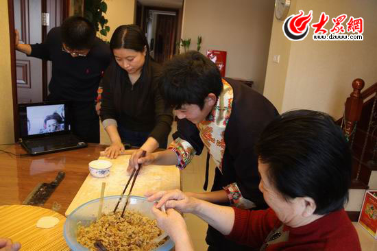 說(shuō)著,三個(gè)孩子把手提電腦一起拿到了飯桌上,爺爺奶奶和桑立新的愛(ài)人正在包水餃,孩子們也都跟著忙活起來(lái),有的搟皮、有的包餡,松塔的姐姐通過(guò)攝像頭看到后笑了起來(lái),“松塔,你在家里怎么沒(méi)見(jiàn)你這么能干呀,好好表現(xiàn)哦。”