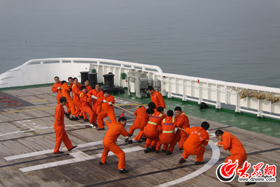 按照計劃今天沒有安排訓練任務,中午大家再一次聚餐。下午拔河比賽照常舉行,在后甲板上集合完畢,分出力量均衡的2支隊伍,船長擔任裁判,在 “加油”的吶喊號子聲中,大家使出渾身解數,奮勇爭先,煥發出了勃勃生機,發揮出了團隊密切合作、頑強拼搏的精神,體現的是集體的智慧和凝聚力,在一方摔倒的歡聲笑語中,有了對救助精神更深涵義的理解。晚上,本船舉行了新春有獎知識問答,旨在寓教于樂,使每一位船員加深對日常應知應會常識的了解,答對了拿到獎品,笑顏逐開,答錯了,加罰一項娛樂節目之后,才能拿到獎品,不亦樂乎。