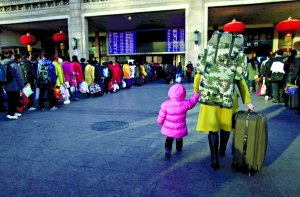 北京站相關負責人表示,長途旅客大部分已經提前買票。離北京較近地區的旅客沒有必要太早買票,當天買票就來得及。根據往年的經驗,臘月廿八到春節假期期間,是短途客流高峰期。該負責人表示,運力完全可應對短途客流高峰,無需加車。
