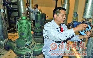 23日,在歷山名郡小區,濟南熱電的工作人員正打壓試水。 本報記者 郭建政 攝