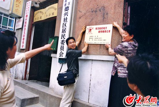 在濟南市槐蔭區振興街德興街社區,掛起記者大名片,與百姓的心貼得更近了。(徐延春 攝)