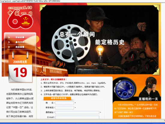 中國一日專題主頁的片頭全部采用了網友上傳的圖片組合,在這一張張普通又幸福的笑臉中,主題語躍動呈現—— “總有一個瞬間,能定格歷史;總有一個故事,能讓人感動;我們都是記錄者……中國一日,記錄中國原生態”。