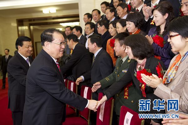 11月4日,第二十一屆中國新聞獎、全國優(yōu)秀新聞工作者頒獎報告會在北京舉行。中共中央政治局常委李長春親切接見獲獎代表。 新華社記者黃敬文 攝
