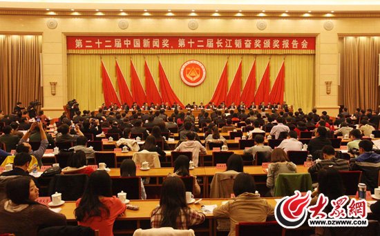 大眾網(wǎng)北京10月26日訊記者 王磊 曹亮)26日下午,第二十二屆中國新聞獎(jiǎng)、第十二屆長(zhǎng)江韜奮獎(jiǎng)?lì)C獎(jiǎng)報(bào)告會(huì)在北京舉行,長(zhǎng)江韜奮獎(jiǎng)獲得者以及包括大眾網(wǎng)董事長(zhǎng)、總經(jīng)理在內(nèi)的中國新聞獎(jiǎng)一等獎(jiǎng)獲得者代表參加了頒獎(jiǎng)大會(huì)并在會(huì)前受到了中央領(lǐng)導(dǎo)的親切接見。大眾網(wǎng)網(wǎng)絡(luò)專題《黨旗漫卷中國紅——走進(jìn)56個(gè)民族家庭大型接力式采風(fēng)活動(dòng)》榮膺中國新聞獎(jiǎng)一等獎(jiǎng),至此,大眾網(wǎng)已連續(xù)三年獲得中國新聞獎(jiǎng)一等獎(jiǎng),創(chuàng)造了省級(jí)重點(diǎn)新聞網(wǎng)站前所未有的驕人成績(jī)。另外,大眾日?qǐng)?bào)通訊《小胡同走出大記者——“張剛現(xiàn)象”啟示錄》、消息《臺(tái)兒莊古城:舍了房 產(chǎn)換遺產(chǎn)》分獲中國新聞獎(jiǎng)二、三等獎(jiǎng)。大眾報(bào)業(yè)集團(tuán)實(shí)現(xiàn)了消息、通訊、評(píng)論、攝影、專欄、網(wǎng)頁設(shè)計(jì)和網(wǎng)頁專題等各類新聞體裁 的“大滿貫”,創(chuàng)造了七年九奪一等獎(jiǎng)的業(yè)界奇跡。