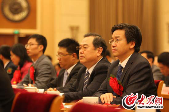 大眾網(wǎng)董事長(zhǎng)、總經(jīng)理林忠禮(右一)作為獲獎(jiǎng)代表參加頒獎(jiǎng)大會(huì)。(記者 曹亮 攝)