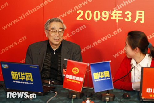 3月9日, 全國政協十一屆二次會議在人民大會堂舉行第四次全體會議,委員進行大會發言。圖為全國政協委員周海嬰做客新華網。楊理光 攝