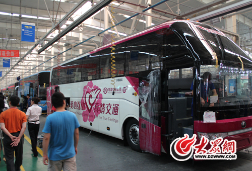 11日下午,采訪團成員進入宇通客車裝配車間參觀